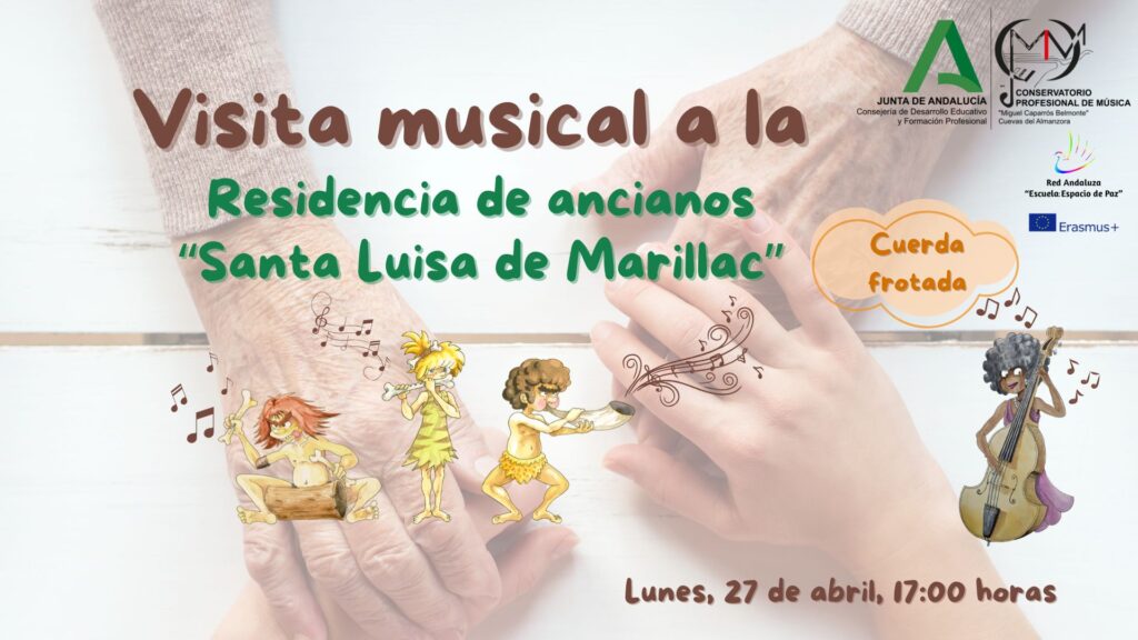 El lunes 27 de marzo se realiza la penúltima visita a la residencia de mayores “Santa Luisa de Marillac” con el alumnado de Enseñanzas Básicas de las especialidades de cuerda frotada. De nuevo, los usuarios de la residencia disfrutan de una experiencia musical muy enriquecedora que en este caso resulta también variada y amena al presentar participaciones de alumnos de la especialidad de violín y viola. Para los alumnos es también una experiencia aleccionadora que les permite aprender los beneficios de compartir su música y esfuerzo.